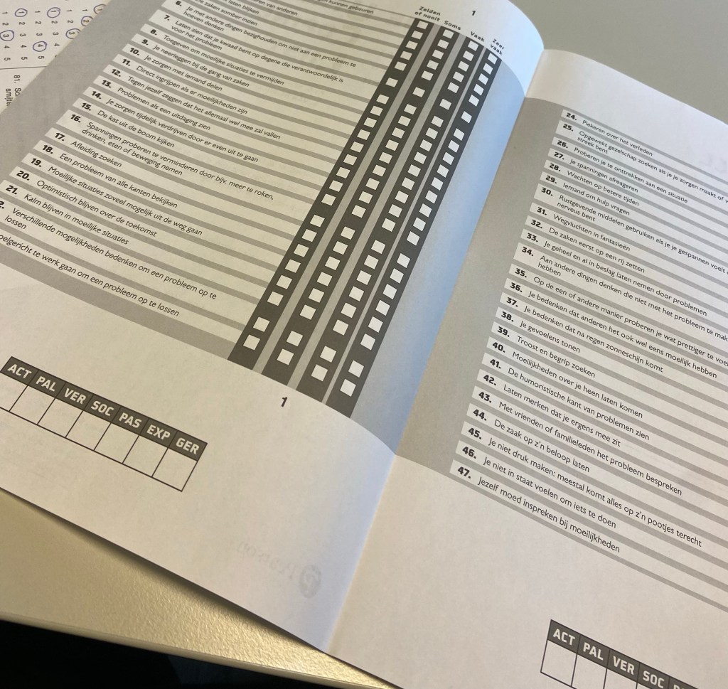 Na het interview ging ik met de MP in opleiding naar een andere ruimte en kreeg ik 2 opdrachten. De eerste was een aantal vragenlijsten invullen. Nu heb ik ze niet geteld, maar volgens mij waren het er in totaal een stuk of 6 a 7. Het idee is om te zien wat er nu precies in mijn hoofd omgaat, of ik angsten heb, hoe mijn relatie is met eten en hoe mijn coping is. En daarnaast zijn er vragen die specifiek bedoeld zijn om Autisme te ontdekken of juist uit te sluiten.