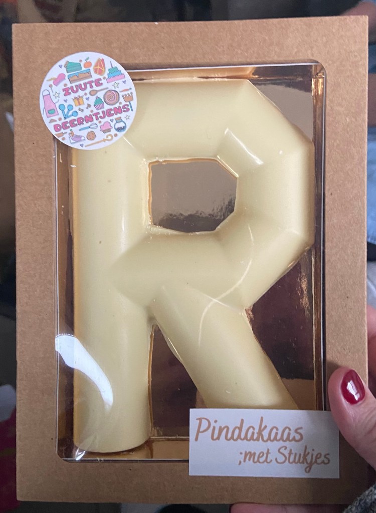 En wat mij betreft was deze voorzorgsmaatregel het dubbel en dwars waard. Ik heb kunnen genieten van een onwijs gezellige middag met een paar van mijn favoriete mensen. Op zo’n moment doet de rest er even niet meer toe! En dan heb ik naast wat prachtige kado’s ook nog zo’n overhéérlijke zelfgemaakte chocolade letter gekregen van m’n zusje.