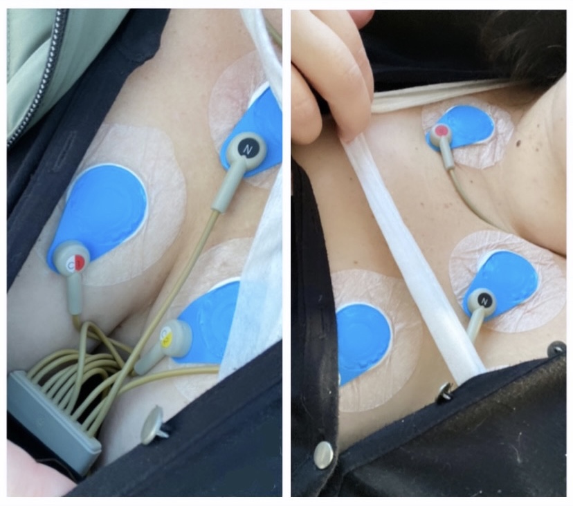 Eerst kreeg ik de ECG. In een ontbloot bovenlijf werden de mechanismes met een soort spray vooraf bevestigd. Het voelt een beetje als kleine beestjes die zich in je huid vastbijten. Maar zo gauw als ze erop zaten mochten ze er ook al bijna weer af. Toen werd mijn hartslag, bloeddruk en gewicht gemeten. Mijn hartslag was deze keer 121, mijn bloeddruk 135/84.