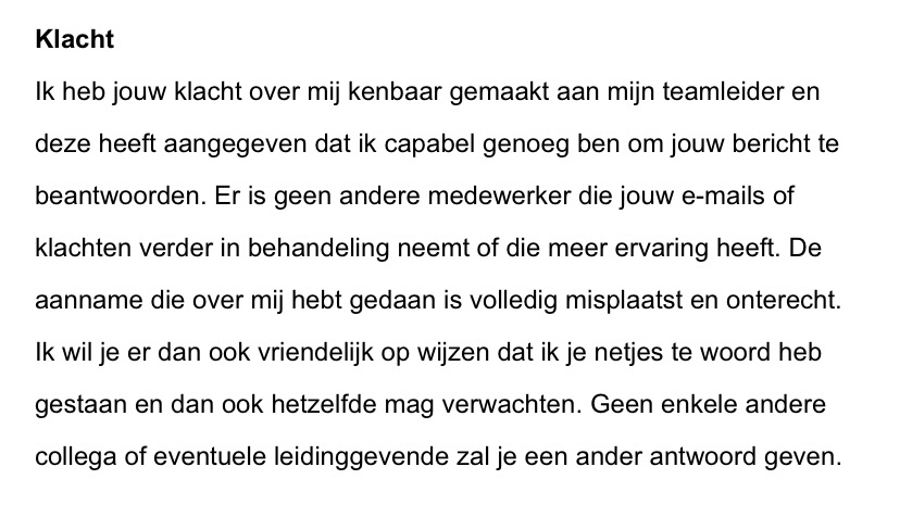 Dat weet ik zelf dus ook soms niet zo goed. Waarom laat ik mij meeslepen? Ik ben heel principieel en soms wil ik per se een ander in laten zien waarom iets zo is. Net als in de bovengenoemde (feitelijke) situatie. Maar als dat niet lukt, dan kan ik dat niet goed loslaten. Waar een ander z’n schouders op haalt bel ik voor de 3e keer op om ze te vertellen door te geven aan die leidinggevende die mij weigert te woord te staan; dat als ze de (klant)beleving van hun supporters wél belangrijk vinden en in de toekomst willen verbeteren dat ik ze graag een training wil geven vanuit mijn werkveld. Gratis en voor niets. Drs. O. schiet in de lach. Ja misschien een beetje arrogant, maar ik werk dagelijks met klanten (B2B) en dit kan in mijn optiek gewoon écht niet.