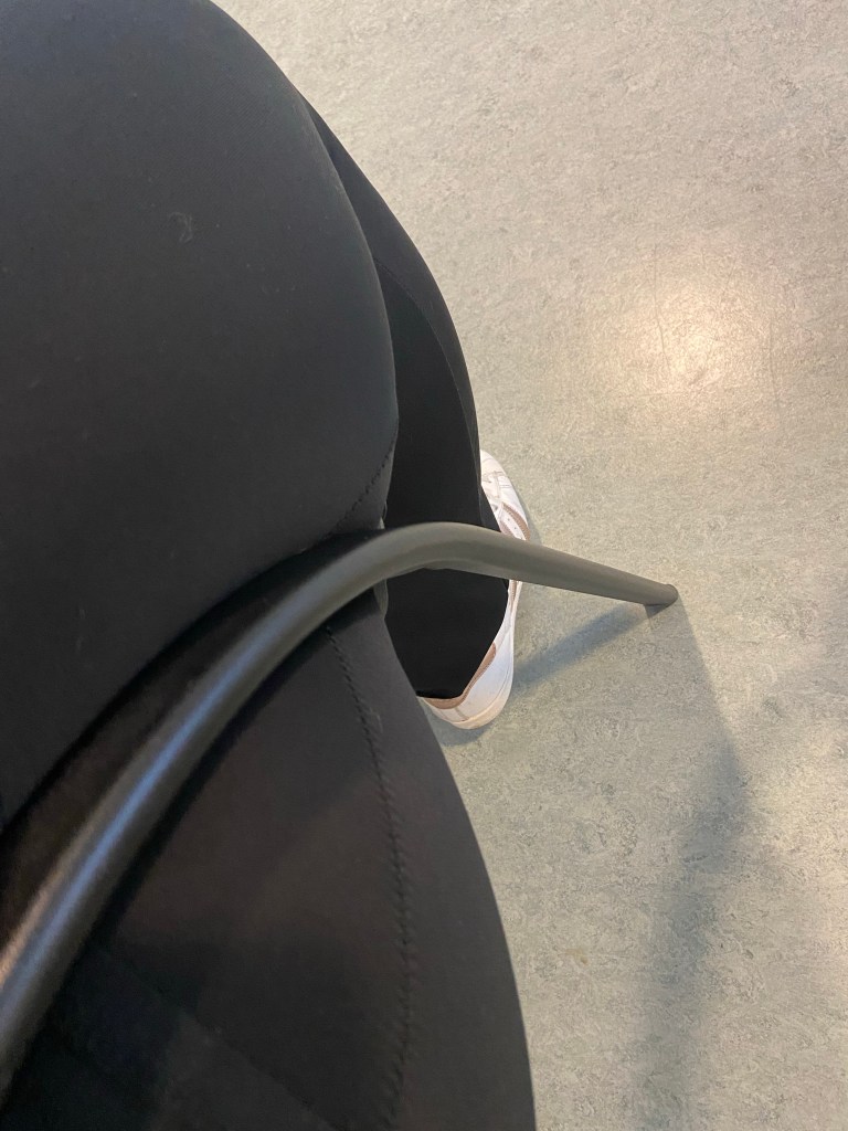 Anyway. In de afgelopen 2 weken had ik afspraken op alle 3 de locaties. De eerste was bij de bewegingstherapeut. De vorige keer waren er al mensen in de wachtkamer dus bleef ik staan. Ik was erg benieuwd of de stoelen nog dezelfde zit-ervaring zouden geven, maar ik wilde mezelf niet voor schut zetten door te gaan zitten en vervolgens weer op te moeten staan. Dus toen ik de enige in de wachtruimte was bij mijn vervolgafspraak ging ik zitten en tot mijn verbazing (én vreugde!) kon ik gewoon blijven zitten!!