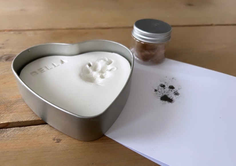 Ook heb ik inmiddels je pootafdruk in gips mogen ontvangen en op papier om zo misschien nog een mooi aandenken mee te creeren. En een klein potje met een beetje van je vacht. Het is niet hetzelfde als dat je hier zou zijn, maar ik vind het een fijne gedachte dat ik kleine dingen heb van jou. Ik hou zo veel van je lieve Bella, ik ga je missen voor altijd!