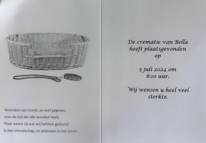 En dat maakt alles zo verdrietig. Je bent inmiddels gecremeerd. 05 juli om 08:10. De allerlaatste fysieke aanwezigheid van jou hier bij ons. Het crematorium liet weten dat de as één keer per 3 maanden wordt uitgestrooid op zee in scheveningen. Dat vind ik een fijne gedachte, dat er een mooie plek is waar jij je laatste rustplaats hebt gevonden.