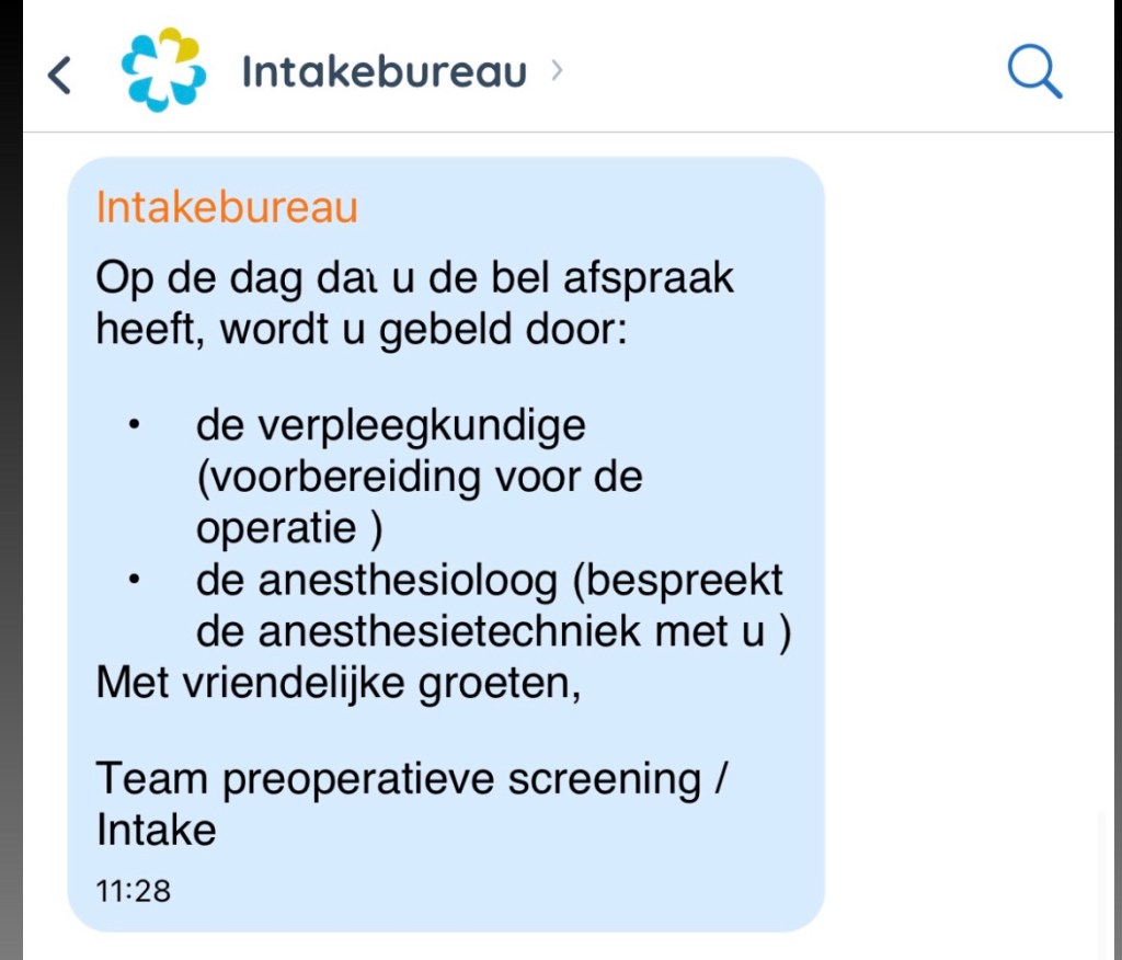 Gister aan de telefoon met de vriendelijke dame die mijn fysieke pre-operatieve screening met mij in ging plannen vertelde dat ik het beste even contact op kon nemen met het ‘Opnamebureau’ als antwoord op mijn vragen over hoe nu verder. Zij hebben inzicht in de wachtlijst en wachttijden die momenteel van toepassing zijn. Natuurlijk had ik van dr. Jaquet al enigszins een richtlijn gekregen, maar ik zou ik niet zijn als ik graag wat meer details had. Al was het maar om een gevoel van controle te hebben, zeker in een onvoorspelbare tijd van wachten.