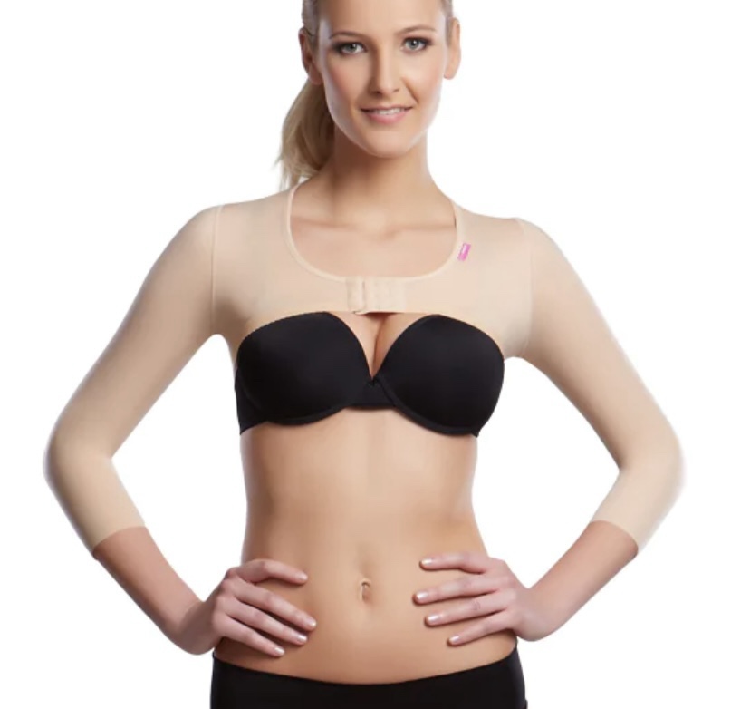 En die mouwen moet ik zeker nog 5 weken lang dragen. En hoewel ik m’n huidige mouwen al niet geweldig vind om te dragen, heb ik besloten om een extra set aan te schaffen in een maatje kleiner (L). Want ik heb het idee dat mijn huidige mouwen iets te gemakkelijk al aangaan en de druk momenteel meer op m’n onderarmen (vanwege het vocht) ligt dan op m’n bovenarmen. Toen ik afgelopen dinsdag een sprintje moest trekken voor de bus was er redelijk wat beweging voor mijn gevoel tussen mijn bovenarm en de mouw. Waardoor ik denk dat een maatje kleiner misschien toch meer ondersteuning geeft.