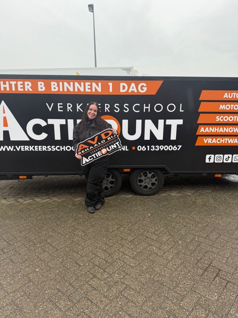 En dat was het dan! Ik ben zo blij, zo dankbaar voor m’n rij-instructeur Jason van Verkeersschool Actiepunt! Als je een fijne rijschool omgeving Rotterdam zoekt, dan kan ik hem ook echt ten zeerste aanraden!