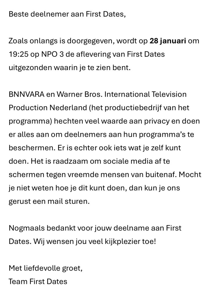 Bijna is het zover! Begin januari kreeg ik de e-mail van First Dates met de uitzenddatum van ‘mijn’ aflevering.